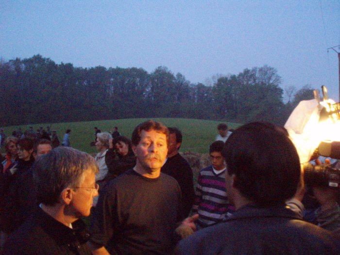 Au petit jour, Noël Genteur, avec Yves Daudigny, explique aux journalistes l'importance du lieu qu'il fait découvrir ou redécouvrir à une foule considérable de près de deux mille personnes.