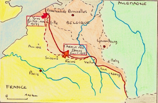 Elements cartographiques : l'évolution du front occidental entre 1914 et 1917
